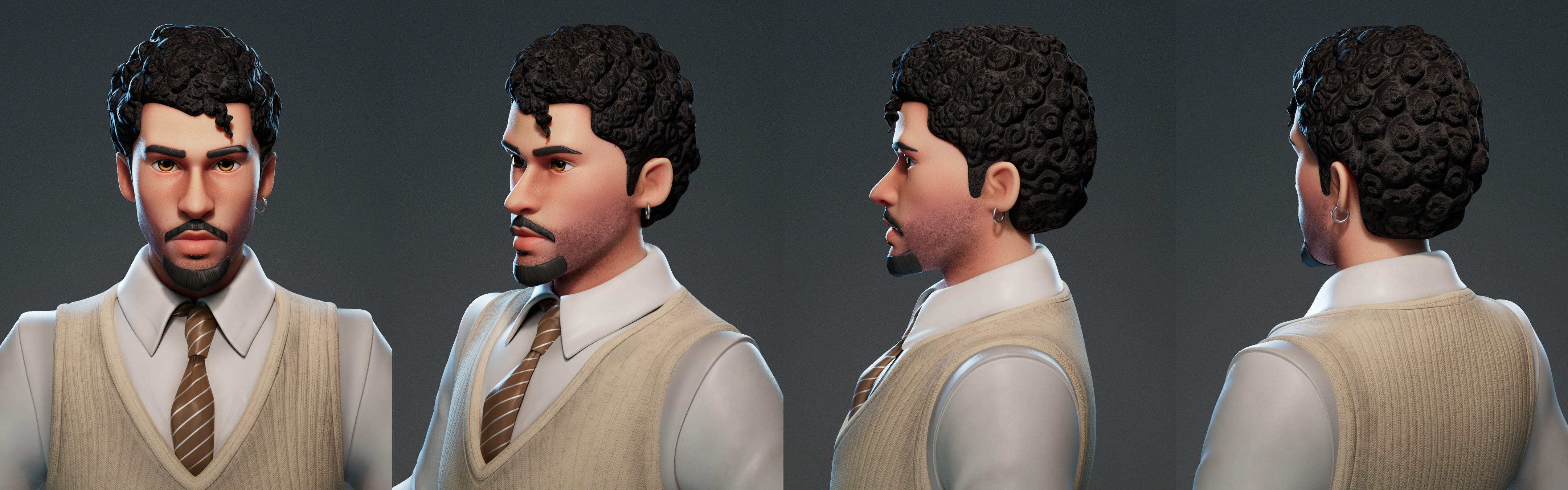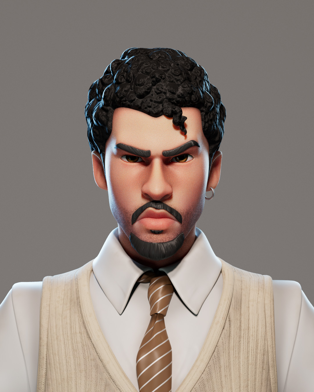 Detailed breakdown of the 3D character project "Bad Bunny", created by Kaan Zorlu using Maya, Zbrush, Substance Painter.